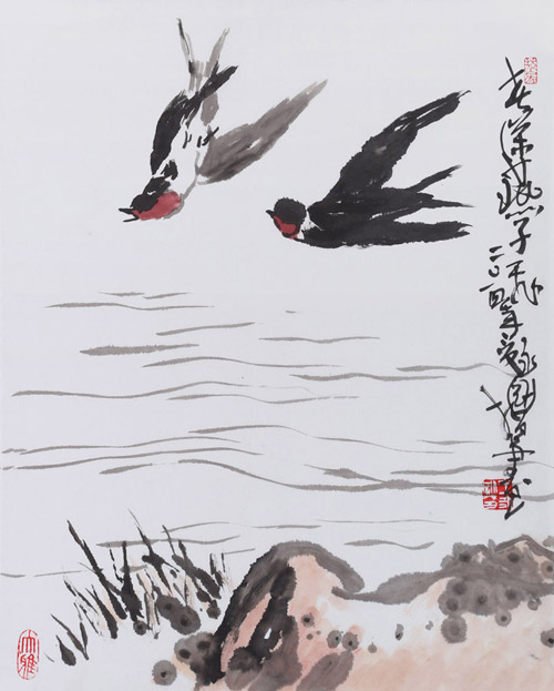王永剛小尺寸手指畫《春深燕子飛》
