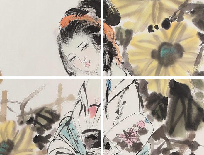 李先生的仕女圖體現了顯著的寫實主義風格的同時又大膽的運用了寫意畫法,特別是以筆墨展示東方女性的美,極力刻畫人物面部特別是眼睛的神韻和精妙,形成了獨特的淡雅簡約的風格。他的作品極具裝飾與收藏價值。