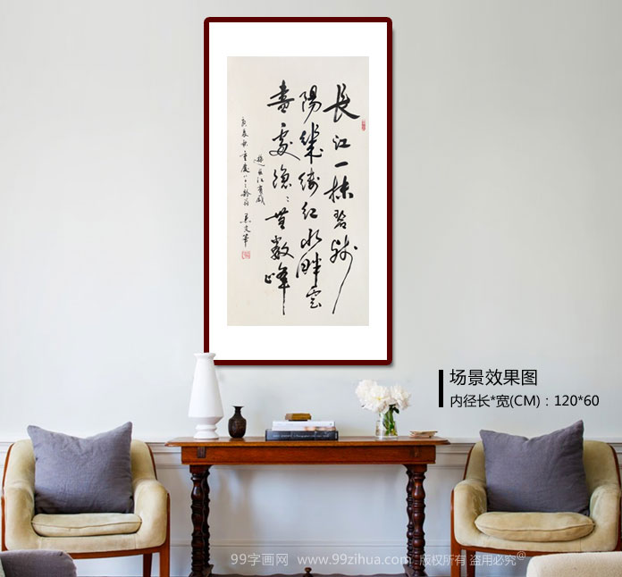 已故名家溫遠達 三尺《長江一抹碧 殘陽幾縷紅》2000年作