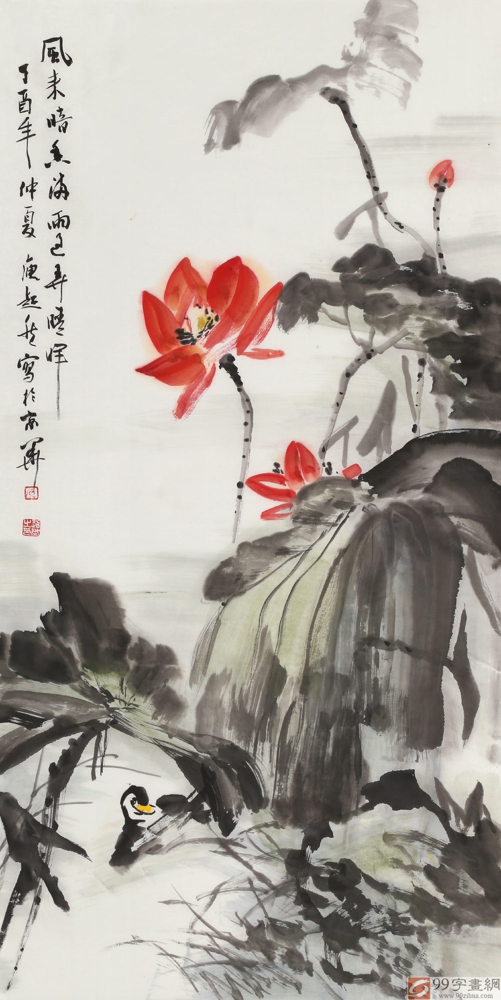 【作品簡評 】 觀庾超然的花鳥畫、人物畫,有清和雋永之氣,而無邪甜庸俗之習,追其原因,即從正格入 ,以雅逸出,于法度中,尋求傳統精華,于超邁中下切實功夫。他的花鳥畫,能給人明朗、清新、簡練 、生機勃勃之感,達到了形神兼備、情景交融的境界。事實上,在庾超然的作品中,常常是詩、書、畫 、印的結合,顯示出一種韻致悠然的綜合性美感。