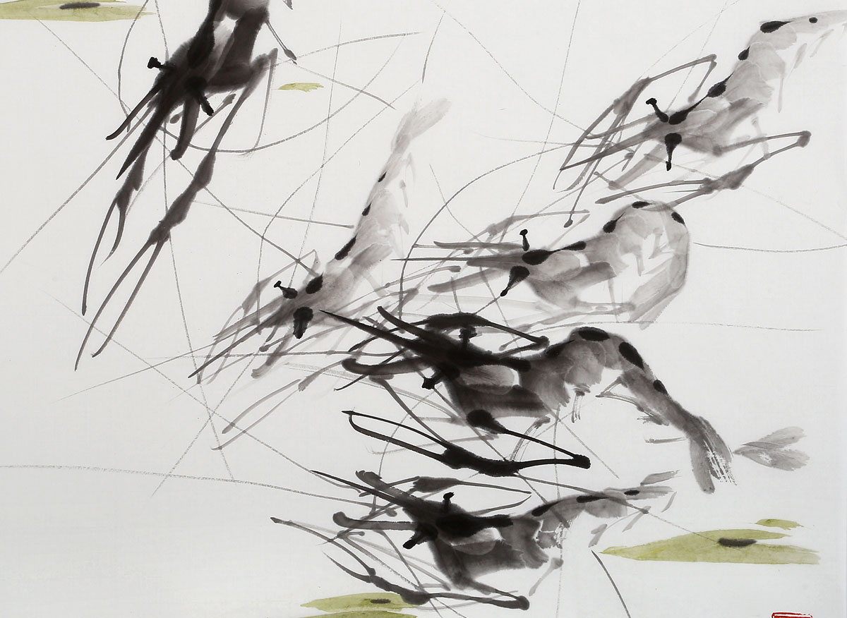 孫海峰的鯉魚畫;以魚為師,得形入神。他的作品以工筆和寫意相間,筆墨勁挺流暢,色彩明潔秀麗。其畫的魚靈動活潑,栩栩如生,神韻充盈,筆墨老到。取材來自于生活卻又超越生活。大膽概括簡化,純墨色的構圖也有著豐富的意境,顯示出畫家高超的藝術功力。