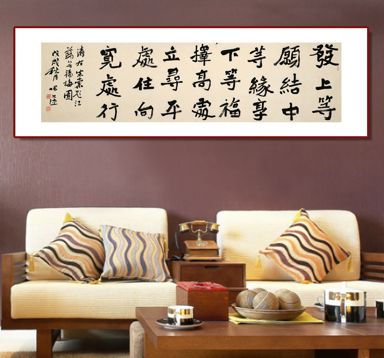【作品簡(jiǎn)評(píng)】李嘉誠(chéng)辦公室懸掛的唯一的一幅書(shū)法,即是這幅書(shū)法作品的內(nèi)容,是清代儒將左宗棠題于江蘇無(wú)錫梅園的詩(shī)句:“發(fā)上等愿,結(jié)中等緣,享下等福;擇高處立,尋平處住,向?qū)捥幮小薄_@24個(gè)字濃縮了深刻的人生哲理,“發(fā)上等愿、結(jié)中等緣、享下等福”,就是胸懷遠(yuǎn)大抱負(fù)、只求中等緣分、過(guò)普通人生活;“向高處立、就平處坐、從寬處行”,則是看問(wèn)題要高瞻遠(yuǎn)矚、做人應(yīng)低調(diào)處世、做事該留有余地。縱觀上、中、下,橫覽高、平、寬,居上時(shí)想到下,立高時(shí)尋找寬。