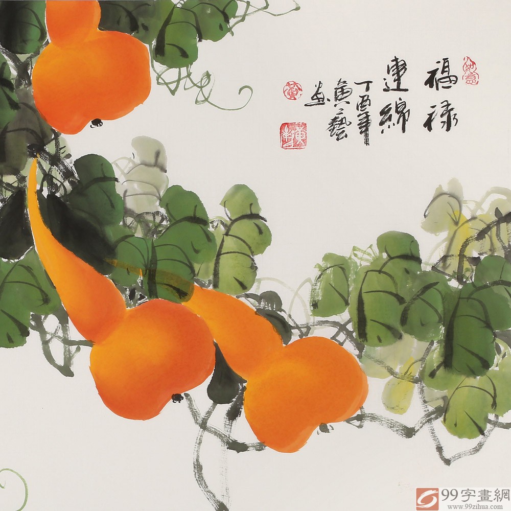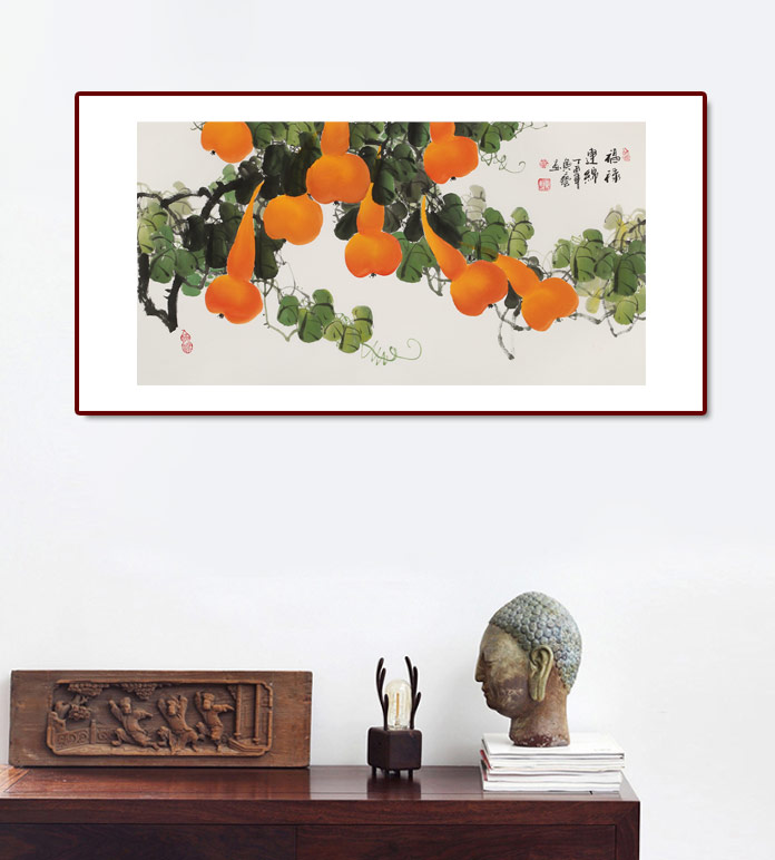 【已售】黃藝三尺招財辟邪葫蘆畫《福祿連綿》