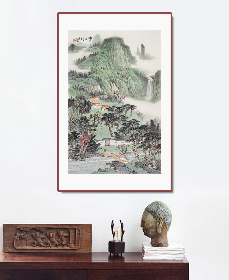 廖崧越 四尺三開《綠染家山》 廣西桂林美協會員