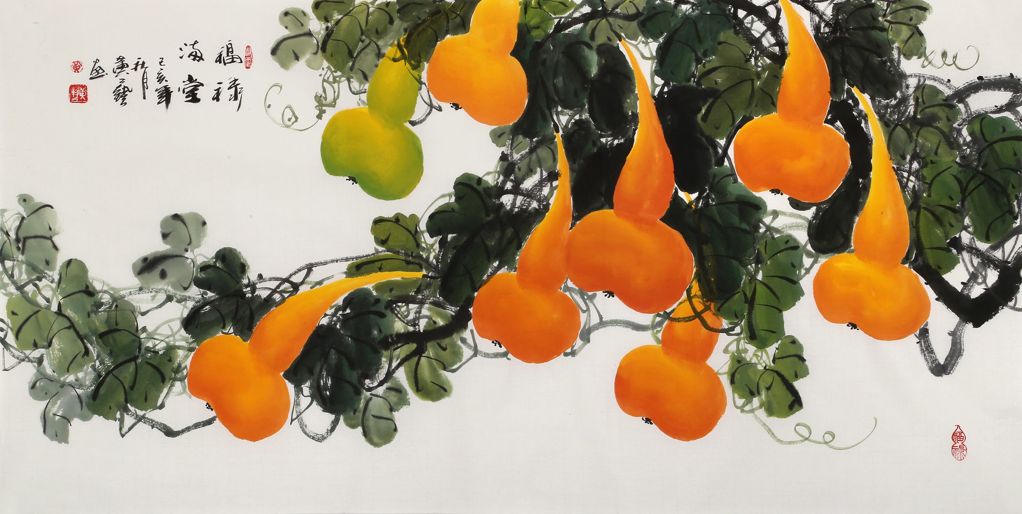 【已售】黃藝 四尺《福祿滿堂》 吉祥家居風水畫