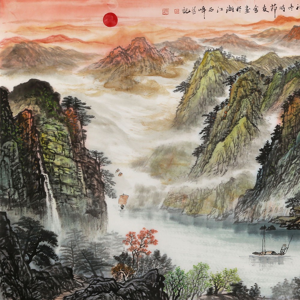 王友金,女,廣西臨桂人,職業(yè)山水畫家,其作品色感強(qiáng)烈,氣勢(shì)宏大,物象深遠(yuǎn),構(gòu)圖大氣卻不空泛,物象豐富又能精心安排,具有極佳的視覺觀感。2013年作品《漓江春意濃》入選《民族百花》中國(guó)各民族美術(shù)作品展;2015年作品《山高水遠(yuǎn)》參加《翰墨齊魯全國(guó)中國(guó)畫作品展》獲入選獎(jiǎng)。