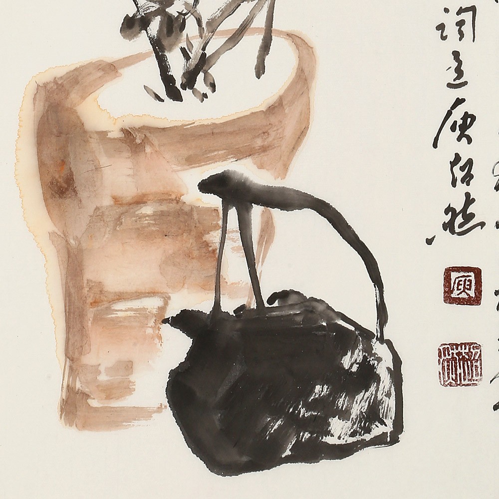 【作品簡評 】 觀庾超然的花鳥畫、人物畫,有清和雋永之氣,而無邪甜庸俗之習(xí),追其原因,即從正格入 ,以雅逸出,于法度中,尋求傳統(tǒng)精華,于超邁中下切實功夫。他的花鳥畫,能給人明朗、清新、簡練 、生機勃勃之感,達(dá)到了形神兼?zhèn)洹⑶榫敖蝗诘木辰纭J聦嵣希阝壮坏淖髌分校3J窃姟?、印的結(jié)合,顯示出一種韻致悠然的綜合性美感。